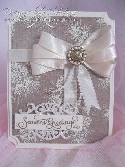 This darker voile is decorated with Pine cones and so makes a lovely finish for a Christmas Card