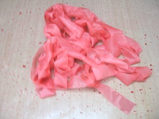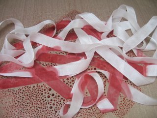 Take a good long length of the seam binding and add it to the dyed water on your mat.