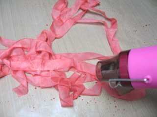This technique wont work on organza ribbons and they will burn with the heat gun.