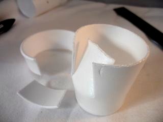 Remove the top 2.5cms (1in) from the top of the cup. (The top dashed line)
