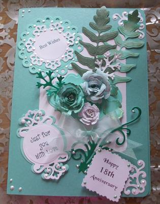 This card was made for my husbands brother and wife for their 18th Anniversary.