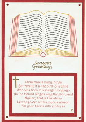 I acquired this image from a book. It took some time to make as all the "words" and "gold edges" are tiny stitches.