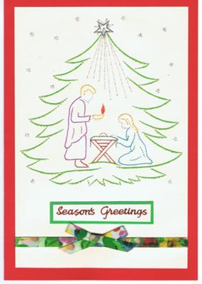 To enhance the finished card I added a star and rays from the tree top then embroidered smaller silver stars over the card.