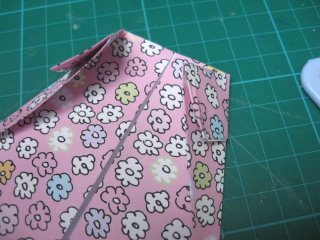 Then take each of the outer edges, in the fold you have just made, and fold in towards the centre join and crease sharply.