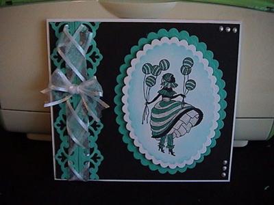 The 3rd card was another I made for the 'Sponging' technique, but this time I tried to give the impression of the Lady being inside with the window in the background.
