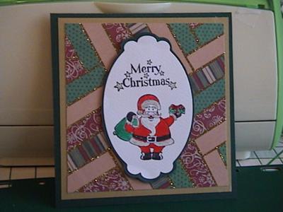 I made this yesterday. The background I made with a pack of Xmas paper which came in a magazine, the stamps too.