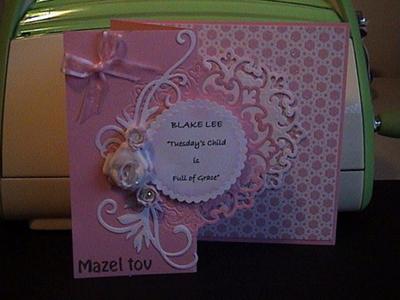 The little girl (pink) one is a take on Christina's Spellbinders Flip Card and measures 6" x 51/2". My friend wanted the names and verses on the cards.