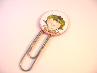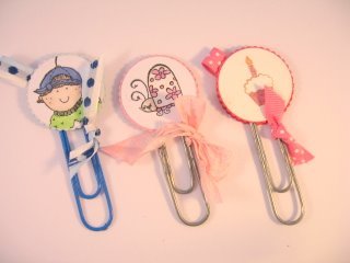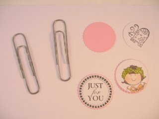 You will need some of the jumbo sized paper clips, some small stamped images and a circle punch or Diecuts.