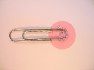 Press the paperclip onto the glue making sure you keep the sliding end of it to the bottom.